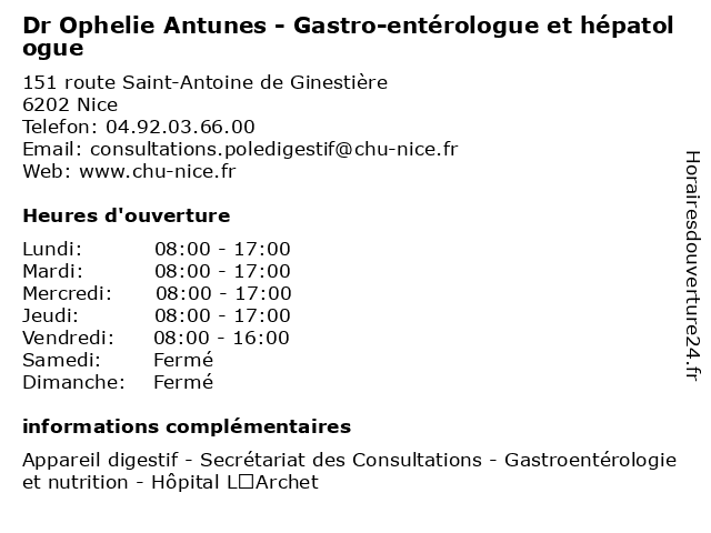 1 Dr Jérôme Filippi - Gastro-entérologue hépatologue (Distance: 0,00 km) 151 route Saint-Antoine de Ginestière, 06202 Nice cancer, cancérologie, dr, entérologie, entérologue, filippi, gastro, hépatologue, hôpital, jerome, jérôme, l’archet 2 Dr Anne-Claire Frin - Gastro-entérologue hépatologue (Distance: 0,00 km) 151 route Saint-Antoine de Ginestière, 06202 Nice anne, cancer, cancérologie, claire, dr, entérologie, entérologue, frin, gastro, hépatologue, hôpital, l’archet 3 Dr Eve Gelsi - Gastro-entérologue hépatologue (Distance: 0,00 km) 151 route Saint-Antoine de Ginestière, 06202 Nice cancer, cancérologie, dr, entérologie, entérologue, eve, gastro, gelsi, hépatologue, hôpital, l’archet 4 Dr Cécile Gomercic - Gastro-entérologue et hépatologue (Distance: 0,00 km) 151 route Saint-Antoine de Ginestière, 06202 Nice cancer, cancérologie, cecile, cécile, dr, entérologie, entérologue, et, gastro, gomercic, hépatologue, hôpital, l’archet 5 Dr Benoit Delabre - Gastro-entérologue et hépatologue (Distance: 1,50 km) 151 Route de Saint-Antoine, 06200 Nice benoit, delabre, dr, entérologue, et, gastro, hépatologue, médecins, médicaments, santé, secrétariat, spécialiste 6 Medecin Nicolas Demuth (hépatologue) (Distance: 3,18 km) 268 Avenue de la Californie, 06200 Nice demuth, docteur, hépatologue, medecin, nicolas, sante, services |