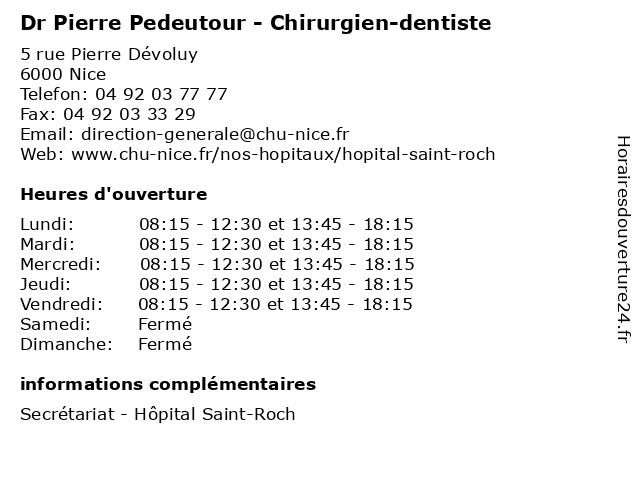 | Lundi | 08:15-12:30 et 13:45-18:15 |
