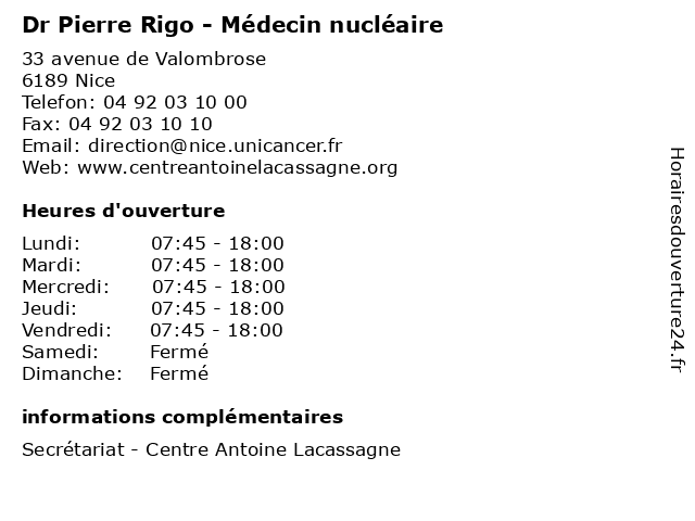 1 Dr. XavierFontana- Médecine Nucléaire (Distance: 0,00 km) 33 Avenue Valombrose, 06189 Nice consultation, docteur, dr., médecine, nucléaire, santé, xavierfontana 2 Dr Danielle Benisvy - Médecin nucléaire (Distance: 0,00 km) 33 avenue de Valombrose, 06189 Nice benisvy, consultation, danielle, docteur, dr, med, médecin, nucléaire, traitement 3 Dr Aurelie Schiazza - Médecin nucléaire (Distance: 0,00 km) 33 avenue de Valombrose, 06189 Nice aurelie, consultation, docteur, dr, med, médecin, nucléaire, schiazza, traitement 4 Dr Colette Zwarthoed - Médecin nucléaire (Distance: 0,00 km) 33 avenue de Valombrose, 06189 Nice colette, consultation, docteur, dr, med, médecin, nucléaire, traitement, zwarthoed 5 Dr Philippe Viau - Médecin nucléaire - secrétariat (Distance: 5,28 km) 151 Route Saint-Antoine Ginestière, 06200 Nice dr, médecin, médecins, médicaments, nucléaire, philippe, santé, secrétariat, spécialiste, viau 6 CHU Nice - Pôle Imagerie - Médecine Nucléaire Conventionnelle (Distance: 5,36 km) 151 Route Saint Antoine de, 06202 Nice bureau, chu, consultation, conventionnelle, dr, imagerie, maladie, med, médecin, médecine, nice, nucléaire, pratique, pôle, thérapie, traitement |