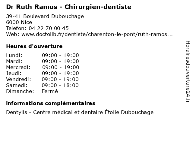 1 Hôtel Novotel (Restaurant - Café by Frédéric Ramos) (Distance: 12,98 km) 16 Boulevard Princesse Charlotte, 98000 Monaco by, café, frédéric, hebergement, hotel, hôtel, novotel, ramos, restaurant, restauration, tourisme 2 Maître Maria Semedo-Ramos - Avocate (Distance: 18,34 km) 2793 Chemin de Saint Claude, 06600 Antibes avocate, avocats, civils, droits, juridiques, maria, maître, ramos, semedo 3 Jones Williams Ruth Margaret (Distance: 20,83 km) La Miranda, 06650 Le Rouret jones, margaret, restaurants, ruth, williams 4 Emmanuel Ramos - Masseur-kinésithérapeute (Distance: 23,19 km) 1090 Voie Julia, 06220 Vallauris consultation, docteur, emmanuel, kinésithérapeute, masseur, med, médecin, ramos, traitement 5 Moss Ruth Deborah (Distance: 40,44 km) Fontaine d Aragon, 83440 Montauroux deborah, moss, restaurants, ruth 6 Dr Hector Caron - Chirurgien-dentiste (Distance: 0,00 km) 39-41 Boulevard Dubouchage, 06000 Nice caron, chirurgien, dentaire, dentiste, dr, hector, implantologie, parodontologie |