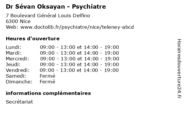 | Lundi | 09:00-13:00 et 14:00-19:00 |