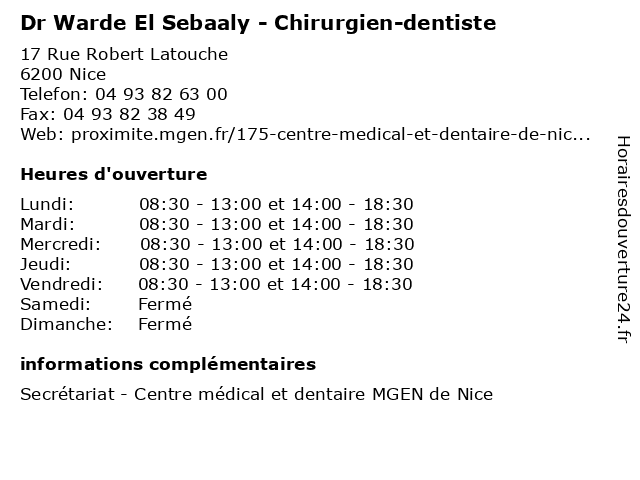 | Lundi | 08:30-13:00 et 14:00-18:30 |