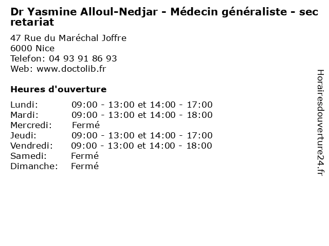 | Mardi | 09:00-13:00 et 14:00-18:00 |