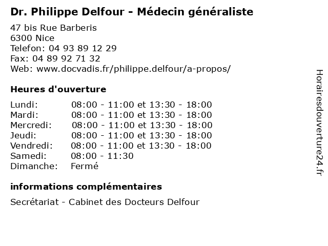 | Lundi | 08:00-11:00 et 13:30-18:00 |