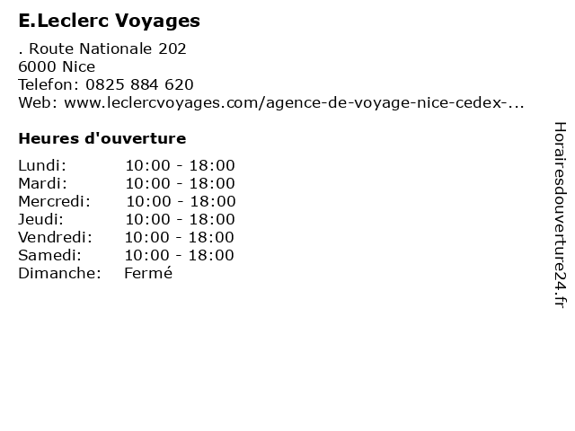 1 E.Leclerc Voyages (Distance: 13,05 km) - route nationale 202, 06200 Nice circuits, e.leclerc, hotel, leclerc, réservation, séjour, voyages 2 E.Leclerc Voyages (Distance: 14,45 km) . Quartier Saint Isidore, 06200 Nice e.leclerc, service, services, services a la personne, voyages 4 Pompes funèbres Florian Leclerc Sublimatorium (Distance: 5,55 km) 232 chemin du claout, 06690 Tourette Levens florian, funèbres, leclerc, pompes, sublimatorium 5 Havas Voyages (Distance: 8,34 km) 4 Rue des Iris, 98000 Monaco agence, départ, havas, location, séjour, voyage, voyages 6 Monaco Voyages (Distance: 8,43 km) 22 Boulevard d'Italie, 98000 Monaco agence, circuits, hôtel, monaco, réservations, séjours, vacances, vol, voyages |