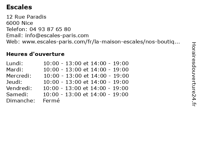| Samedi | 10:00-13:00 et 14:00-19:00 |