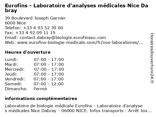Termes de recherche pour Eurofins - Laboratoire d'analyses médicales Nice Dabray:nice, d'analyses, laboratoire, médicales, dabray, eurofins |