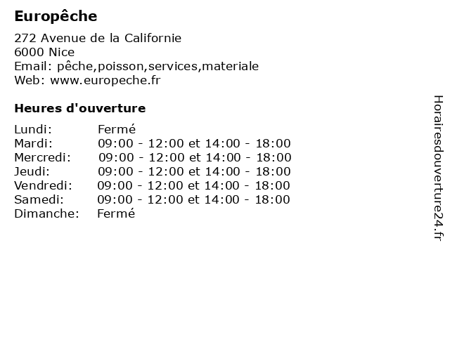 | Vendredi | 09:00-12:00 et 14:00-18:00 |
