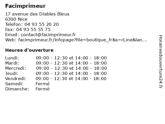 | Lundi | 09:00-12:30 et 14:00-18:00 |