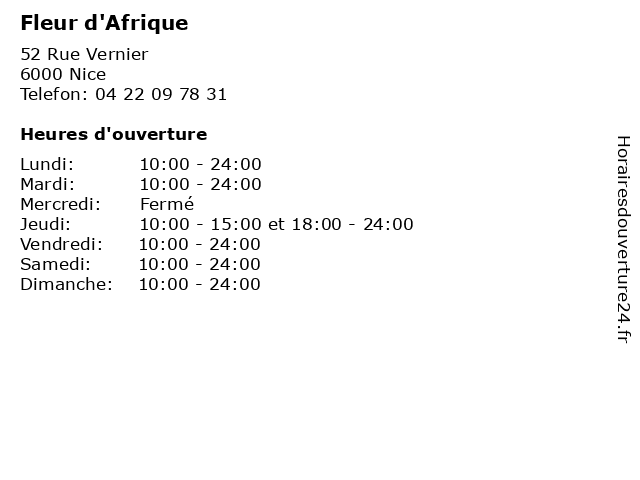 | Jeudi | 10:00-15:00 et 18:00-24:00 |
