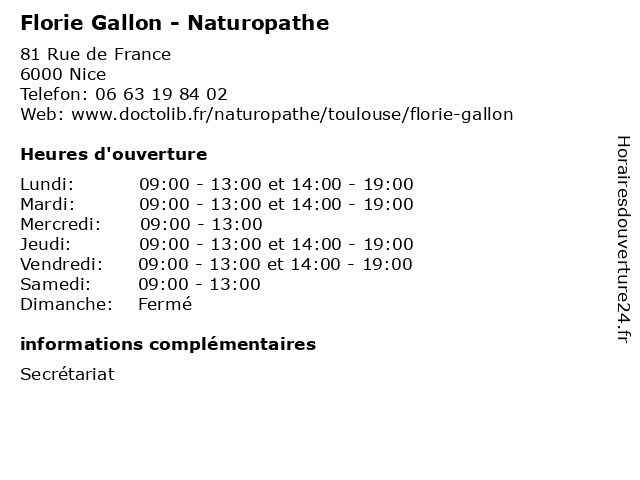 | Lundi | 09:00-13:00 et 14:00-19:00 |