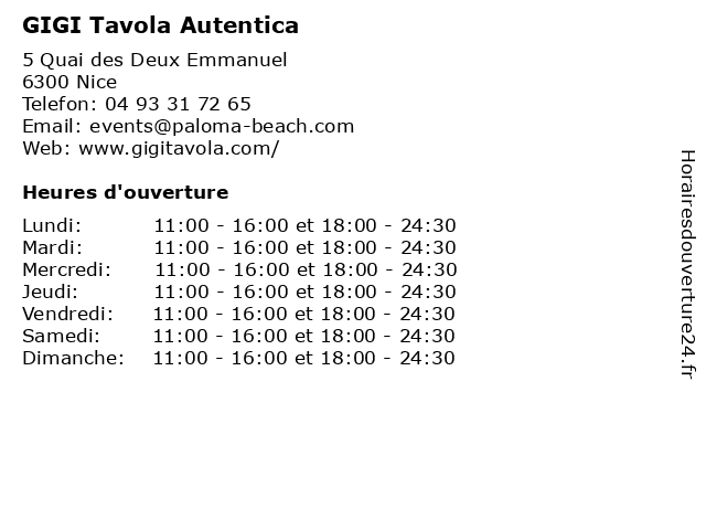 | Mardi | 11:00-16:00 et 18:00-24:30 |