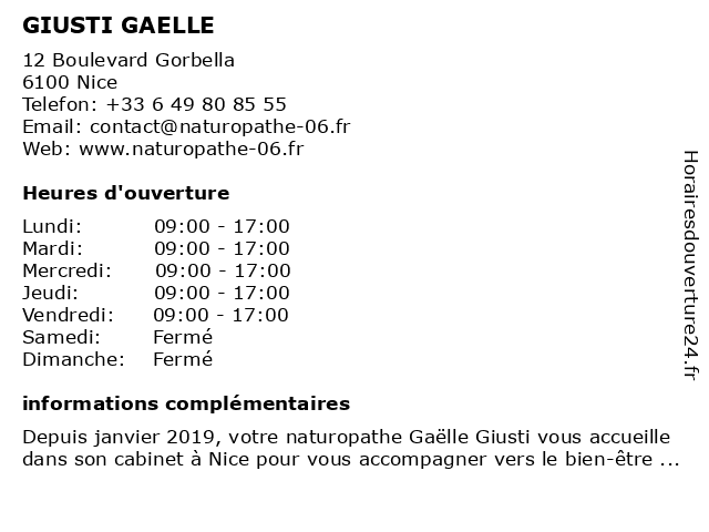 2 Dr Anne-Gaelle Decoux-Poullot - Endocrinologue (Distance: 3,45 km) 151 route de Saint-Antoine, 06200 Nice anne, decoux, diabete, diabetologue, dr, endocrinologue, gaelle, hôpital, l’archet, métabolique, obesite, poullot 3 Dr Gaelle Calemczuk - Médecin généraliste (Distance: 5,36 km) 43 Boulevard du Général de Gaulle, 06340 La Trinité calemczuk, docteur, dr, gaelle, generaliste, généraliste, medical, médecin, soin 4 Anne-Gaelle Dalle - Psychologue (Distance: 7,25 km) 23 Rue Marius Ferrier, 06790 Aspremont anne, dalle, gaelle, psy, psychiatre, psychologue, sante, soins 5 Gaelle Combe - Psychologue (Distance: 13,20 km) 7 Avenue d'Alsace, 06240 Beausoleil combe, gaelle, psy, psychiatre, psychologue, sante, soins 6 Gaelle Picorella - Naturopathe (Distance: 18,78 km) 12 Boulevard Dugommier, 06600 Antibes docteur, gaelle, naturopathe, picorella, sante, soins |