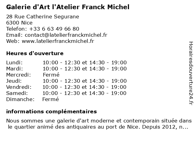 | Lundi | 10:00-12:30 et 14:30-19:00 |