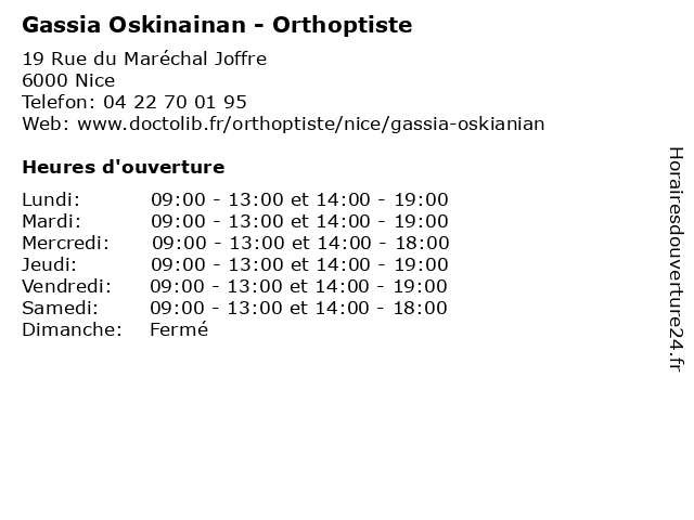 | Lundi | 09:00-13:00 et 14:00-19:00 |