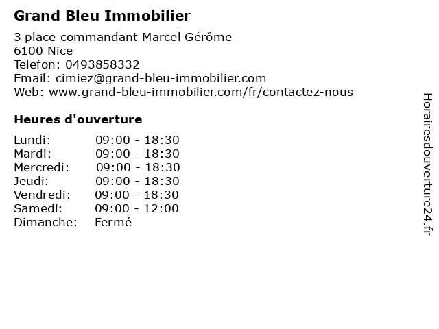 1 Grand Bleu Immobilier (Distance: 3,38 km) 24 Rue de France, 06000 Nice agence, bleu, gestion, grand, immobilier, location, transactions, vente 2 Grand Bleu Immobilier (Distance: 3,41 km) 494 Avenue de Pessicart, 06100 Nice agence, bleu, gestion, grand, immobilier, location, transactions, vente 3 Etablissement multi-accueil L'oiseau bleu (Distance: 0,50 km) 49 Avenue Cap de croix, 06100 Nice accueil, bleu, caregivers houses, child care, etablissement, family home, home care, kindergartens, l'oiseau, micro-nurseries, multi, parental home 4 Le Grand Chelem (Distance: 1,54 km) 63 Boulevard Gorbella, 06100 Nice bar, bistro, bistrot, brasserie, café, chelem, grand, le, restaurant, restauration 5 Bleu de France (Distance: 2,27 km) 15 Boulevard Delfino, 06300 Nice beaute, bleu, chaussures, de, deco, enfants, france, mode femmes, mode hommes, restaurant, sport 6 L'Oiseau Bleu (Distance: 2,74 km) 17 Rue Gubernatis, 06000 Nice bleu, cheveux, coiffure, coupe, l'oiseau, salons |