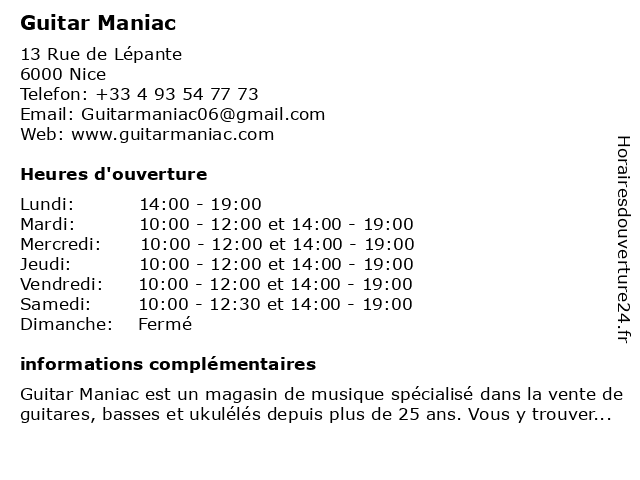 Guitar Maniac est un magasin de musique spécialisé dans la vente de guitares, basses et ukulélés depuis plus de 25 ans. Vous y trouverez plus de 400 références d'instruments ainsi que des c...