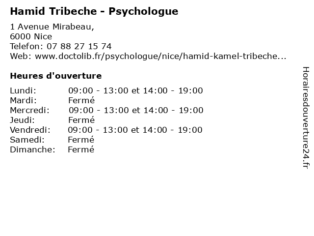| Lundi | 09:00-13:00 et 14:00-19:00 |