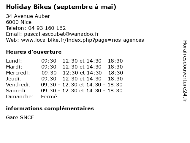 | Mardi | 09:30-12:30 et 14:30-18:30 |