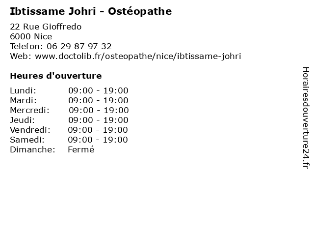 1 Julie Derlon - Ostéopathe - secretariat (Distance: 0,00 km) 22 Rue Gioffredo, 06000 Nice derlon, julie, médecin, médecine, médical, ostéopathe, pharmaceutique, secretariat, traitement 2 Gérard Guilbaut - Hypnothérapeute (Distance: 0,00 km) 22 Rue Gioffredo, 06000 Nice gerard, guilbaut, gérard, hypno, hypnose, hypnothérapeute, sante 3 Caroline Bigot Mérou - Hypnothérapeute (Distance: 0,00 km) 22 Rue Gioffredo, 06000 Nice bigot, caroline, hypno, hypnose, hypnothérapeute, mérou, sante 4 Valérie Amoros - Hypnothérapeute (Distance: 0,00 km) 22 Rue Gioffredo, 06000 Nice amoros, hypno, hypnose, hypnothérapeute, sante, valérie 5 Elise Pinel - Naturopathe (Distance: 0,00 km) 22 Rue Gioffredo, 06000 Nice elise, medecin, naturopathe, pinel, plante, sante 6 Valerian Cornudet - Hypnothérapeute (Distance: 0,00 km) 22 Rue Gioffredo, 06000 Nice cornudet, hypno, hypnose, hypnothérapeute, sante, valerian |