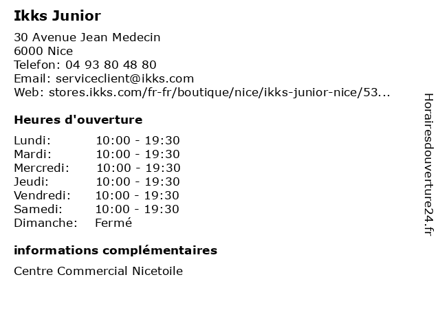 1 Ikks Junior (Distance: 11,97 km) 119 Avenue Des Alpes, 06800 Cagnes Sur Mer accessoires, ikks, junior, mode, vêtements 2 IKKS Junior (Distance: 13,81 km) 38 Boulevard des Moulins, 98000 Monaco enfants, ikks, jeans, junior, pantalons, tendances, vestes, vetements 3 IKKS Men (Distance: 0,35 km) 8 Rue de la Liberté, 06000 Nice bebe, boutique, enfants, homme, ikks, men, mode femme 4 IKKS Men (Distance: 7,47 km) - Avenue Eugène Donadeï, 06700 Saint-Laurent-du-Var enfants, femme, homme, ikks, jeans, men, pantalons, tendances, vestes, vetements 5 IKKS Women (Distance: 7,47 km) - Avenue Eugène Donadeï, 06700 Saint-Laurent-du-Var beaute&sante, bijoux, chausures, decoration, ikks, mode enfants, mode femmes, mode hommes, optique, restaurant, sport, women 6 IKKS Women (Distance: 7,47 km) . Avenue Eugène Donadeï, 06700 Saint Laurent du Var bebe, boutique, enfants, homme, ikks, mode femme, women |