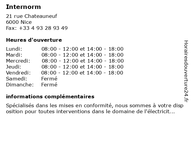 1 INTERNORM (Installation climatisation, chauffage, plomberie, pompe à chaleur, électricité) (Distance: 3,18 km) 10 Rue Gustave Garaud, 06300 Nice chaleur, chauffage, chauffagiste, climatisation, fournisseur de chaudières, installation, internorm, plomberie, plombier, pompe, ébéniste, électricien, électricité |