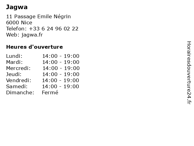 | Samedi | 14:00-19:00 |