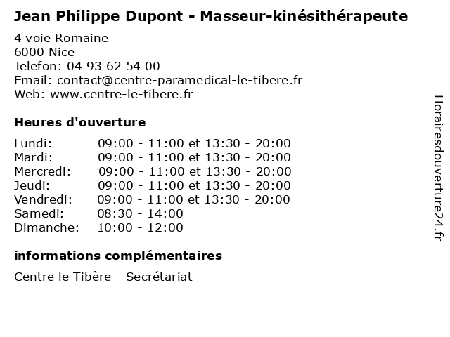 | Lundi | 09:00-11:00 et 13:30-20:00 |