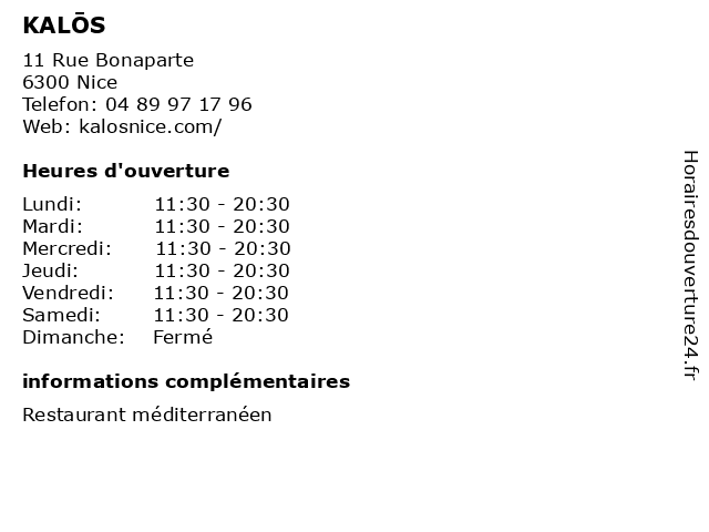 | Samedi | 11:30-20:30 |