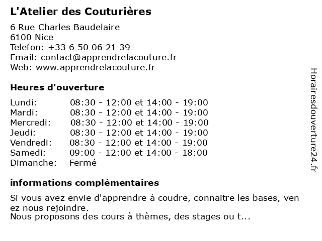 | Mardi | 08:30-12:00 et 14:00-19:00 |