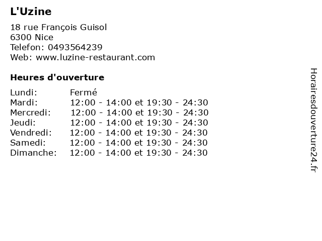 | Dimanche | 12:00-14:00 et 19:30-24:30 |