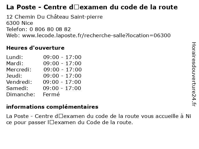 Termes de recherche pour La Poste - Centre d’examen du code de la route:poste, la, du, de, route, centre, code, d’examen, centre d'évaluation scolaire, école technique |