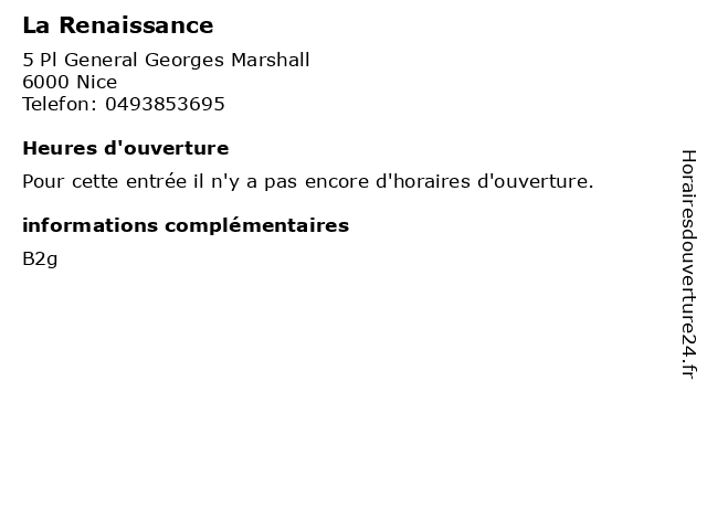 Termes de recherche pour La Renaissance:restaurants, renaissance, b2g |