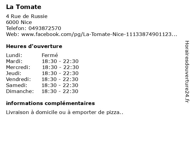 | Dimanche | 18:30-22:30 |