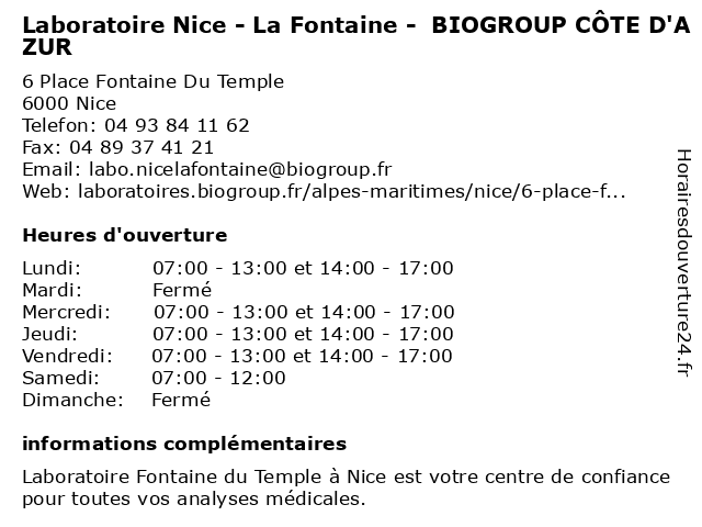 Termes de recherche pour Laboratoire Nice - La Fontaine - BIOGROUP CÔTE D'AZUR:la, fontaine, nice, laboratoire, cote, d'azur, biogroup, dépistages, laboratoire de diagnostic |
