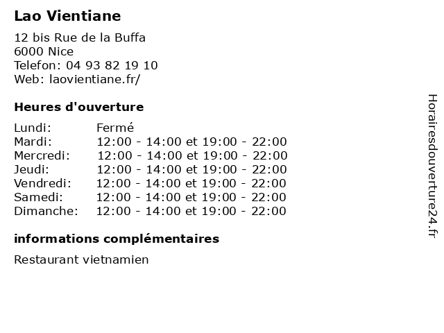 | Dimanche | 12:00-14:00 et 19:00-22:00 |