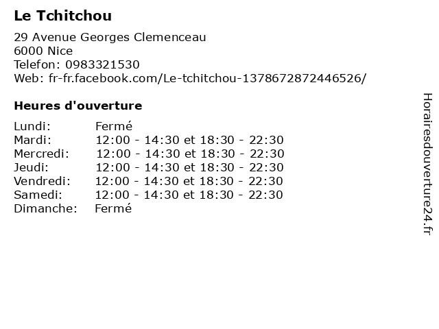 | Mardi | 12:00-14:30 et 18:30-22:30 |