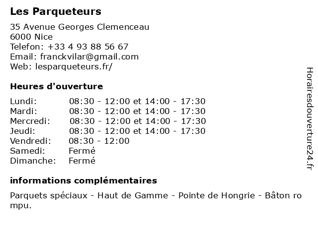 | Lundi | 08:30-12:00 et 14:00-17:30 |
