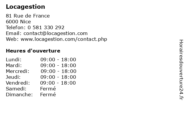 | Lundi | 09:00-18:00 |