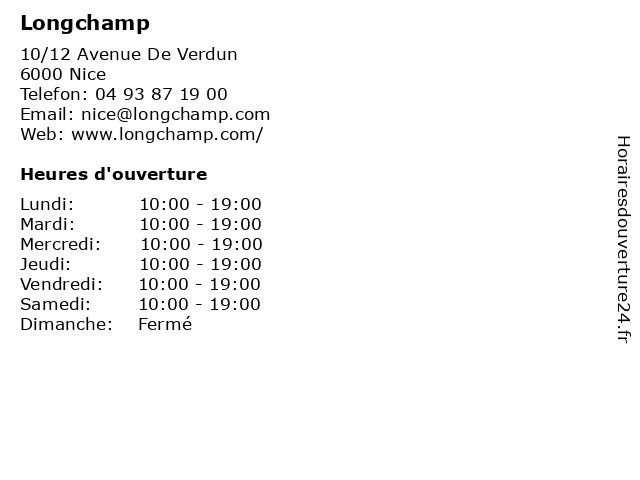 | Lundi | 10:00-19:00 |