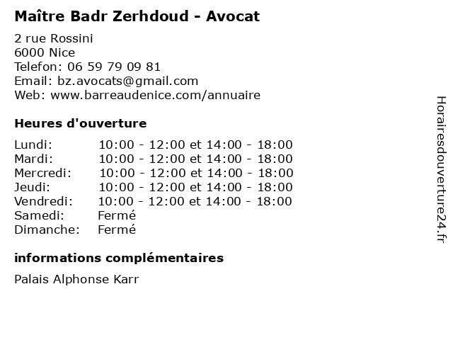 | Lundi | 10:00-12:00 et 14:00-18:00 |