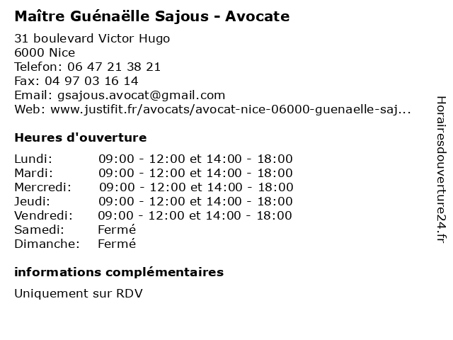 | Lundi | 09:00-12:00 et 14:00-18:00 |
