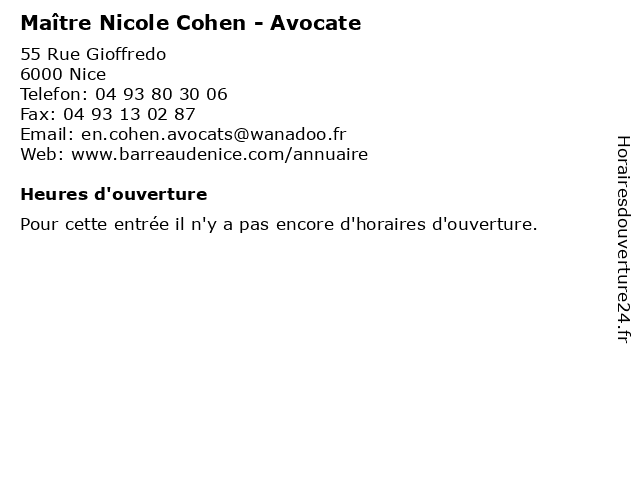 | Appeler Maître Nicole Cohen - Avocate | |