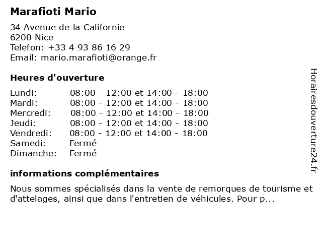 1 Coiffure Mario-Marcel (Distance: 3,08 km) 1 Rue de l'Hôtel des Postes, 06000 Nice beauté, coiffure, coiffures, coloristes, marcel, mario 2 Spoto Stephane Mario Antoine (Distance: 9,34 km) Batiment b Villa Manda, 06510 Gattieres antoine, mario, neuves, occasion, spoto, stephane, vente, voitures 3 Mario Air Systemes (Distance: 10,22 km) 61 Chemin du Passage de Bonne Heure, 06270 Villeneuve-Loubet air, mario, systemes 4 Mario FERNANDES Architecture (Distance: 10,70 km) 1119 Route de la Colle, 06570 Saint-Paul-de-Vence architecture, fernandes, mario 6 Boucherie Mario et Fils (Distance: 19,25 km) 13 avenue de la Gare, 06220 Vallauris boucherie, boucheries, charcuterie, et, fils, mario |