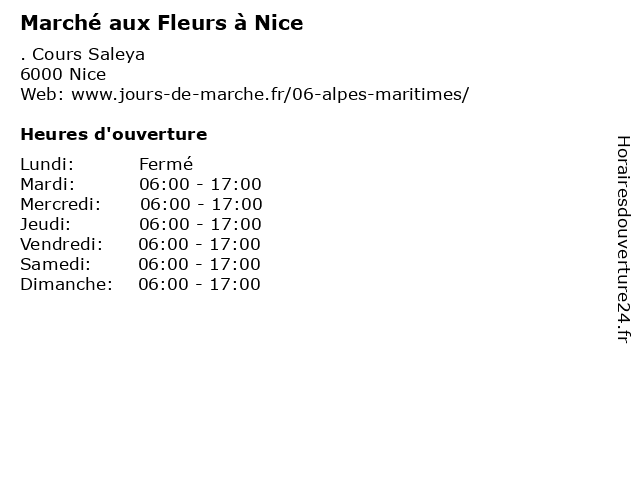 | Dimanche | 06:00-17:00 |