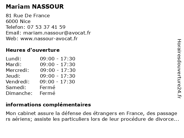 | Lundi | 09:00-17:30 |