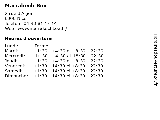 | Mercredi | 11:30-14:30 et 18:30-22:30 |