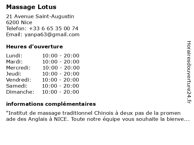 1 Massage Claude - Masseur et Magnétiseur - Magnétisme Curatif Nice (Distance: 2,51 km) 115 Boulevard de la Madeleine, 06000 Nice claude, curatif, et, magnetiseur, magnetisme curatif, magnétiseur, magnétisme, massage, masseur, masseur nice, nice 2 Le Lotus Bleu (Distance: 3,20 km) Cellules 36 Et 37, 06700 St Laurent Du Var bleu, lotus, restaurants 3 Eden - Institut de Massage (Distance: 3,53 km) 2 Rue Verdi, 06000 Nice bien-entre, de, eden, institut, massage, massages, nice, relaxation, santé, thérapies 4 Massage Effervesens Nicolas (Distance: 3,87 km) 28 Avenue pessicart, 06100 Nice bien-entre, effervesens, massage, massages, nicolas, relaxation, santé, thérapies 5 San Massage (Distance: 4,20 km) 32 Rue Marceau, 06000 Nice bien-entre, massage, massages, relaxation, san, santé, thérapies 6 Institut Mass - Massage Thaï (Distance: 5,14 km) 9 Rue Scaliero, 06300 Nice bien-entre, institut, mass, massage, massages, nice, relaxation, santé, thaï, thérapies |