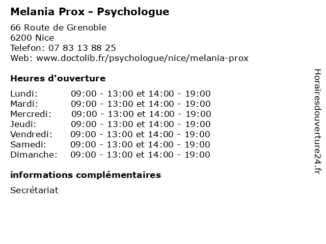 | Lundi | 09:00-13:00 et 14:00-19:00 |