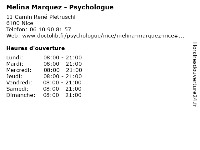 Mercredi | 08:00-21:00 |